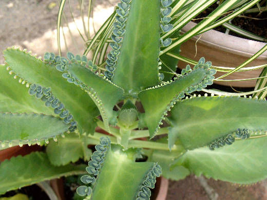 葉っぱの周りに赤ちゃんがいっぱい並んでいます。
