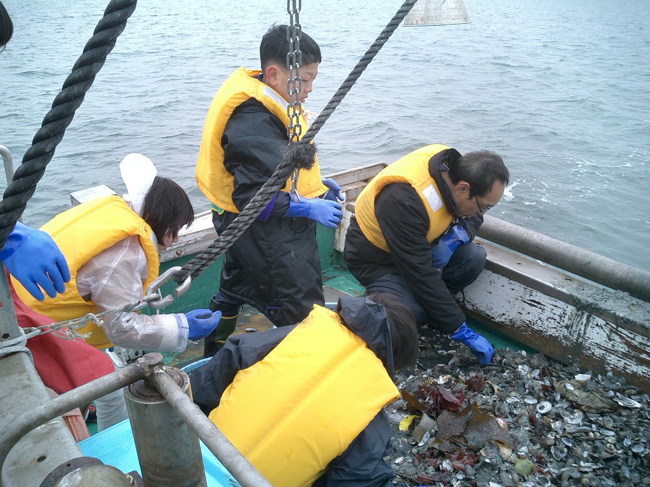 現在まで、漁船による海底ゴミの引き上げ調査や漁協での聞き取り調査を実施してきました。