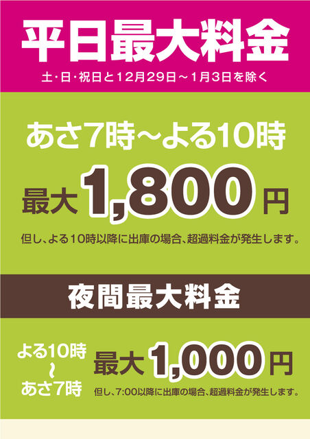 ※翌朝7:00以降に出庫の場合、超過料金が発生致します。