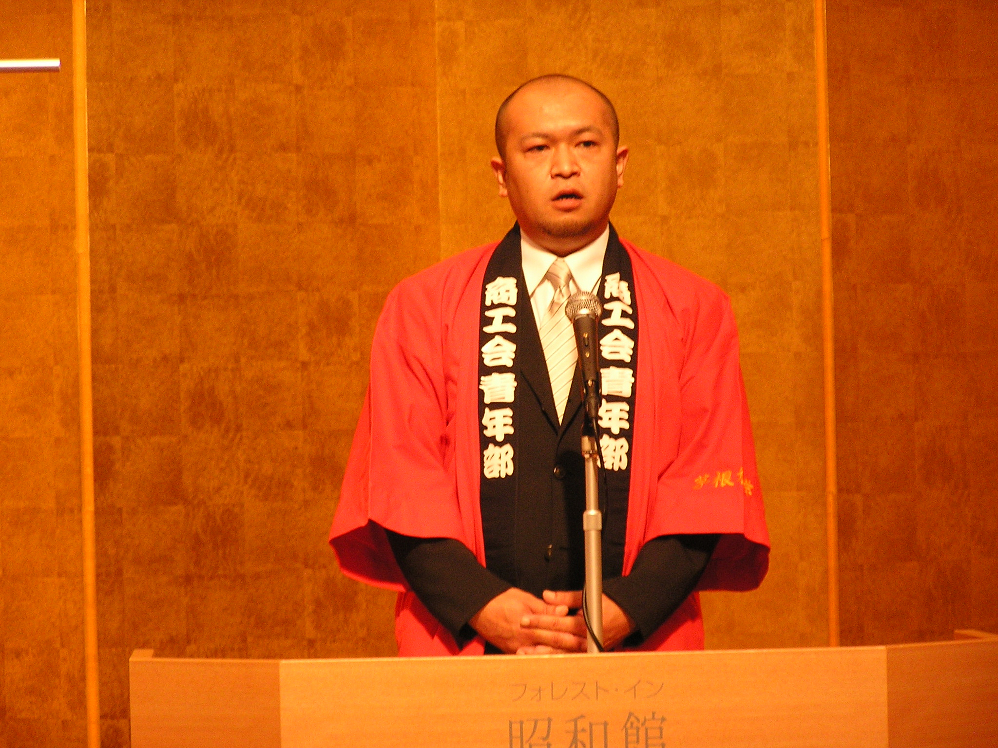 今回卒業された木場伸介君の卒業挨拶です。長い間、青年部活動お疲れ様でした。