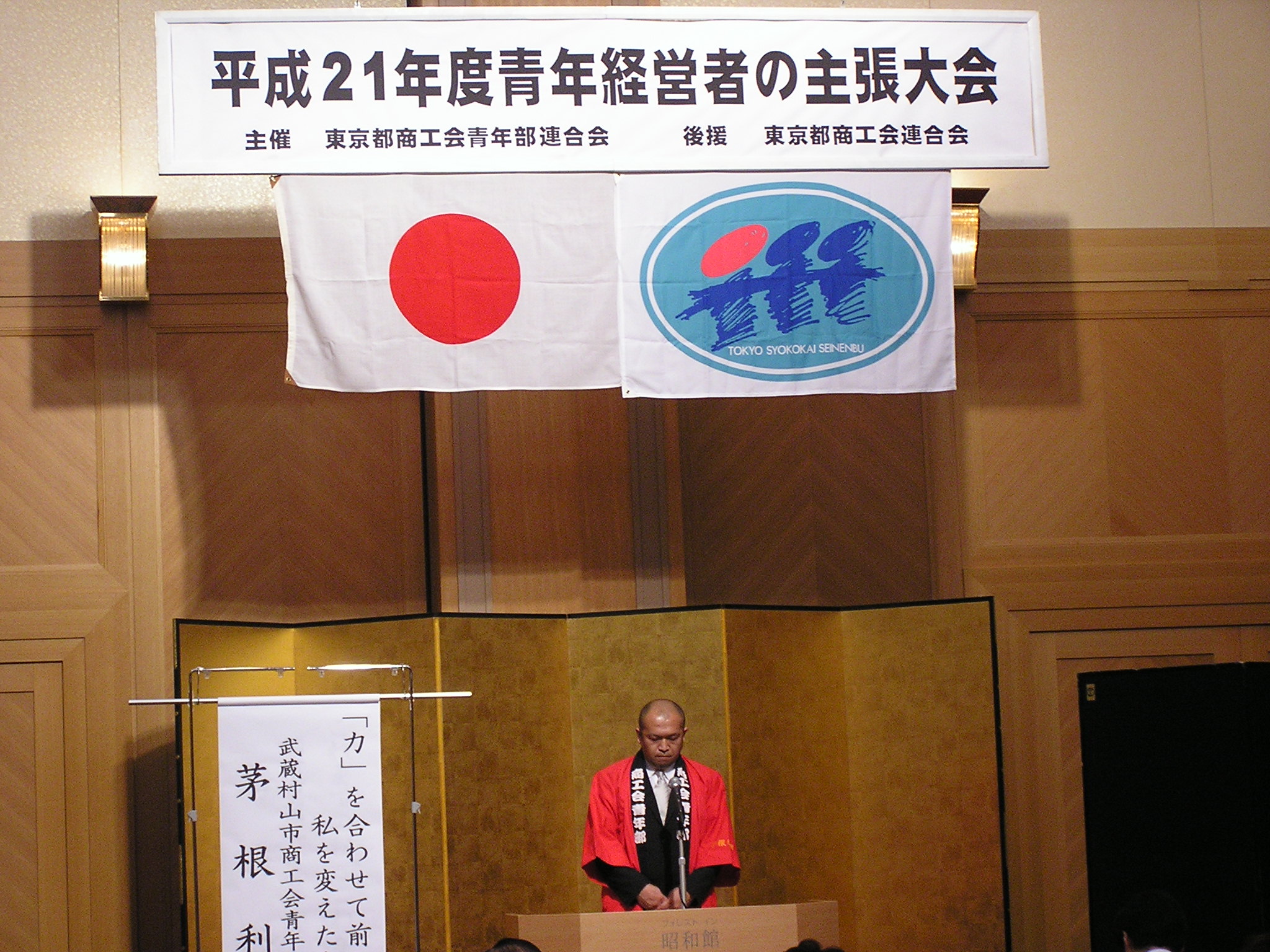 7月5日(日)フォレストイン昭和館にて青年経営者の主張大会が行われました。今年の主張者 茅根 利幸君です。