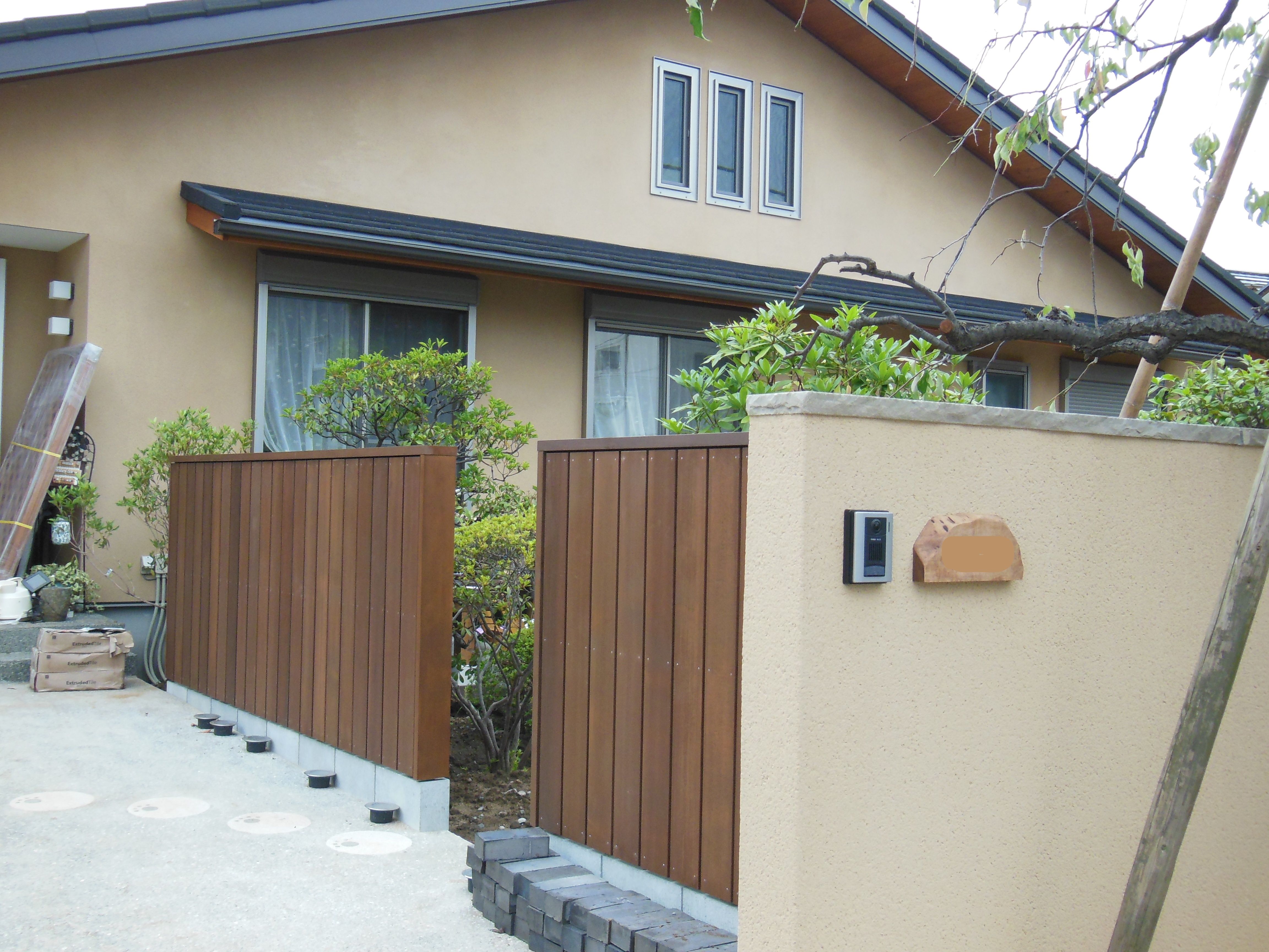もともとあった植木などを一時仮植えしてありました。 植木屋さんがそれらの木を戻す作業があったので、少し間が空いてしまいましたが、ひとまずアプローチ側の板塀が完成しました。