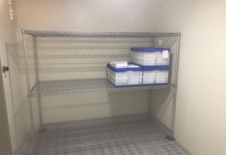 先にご紹介させて頂いた冷凍設備に加え常温保存対応・冷蔵対応可能な冷蔵庫をクリーンルーム内に2台完備致しました。