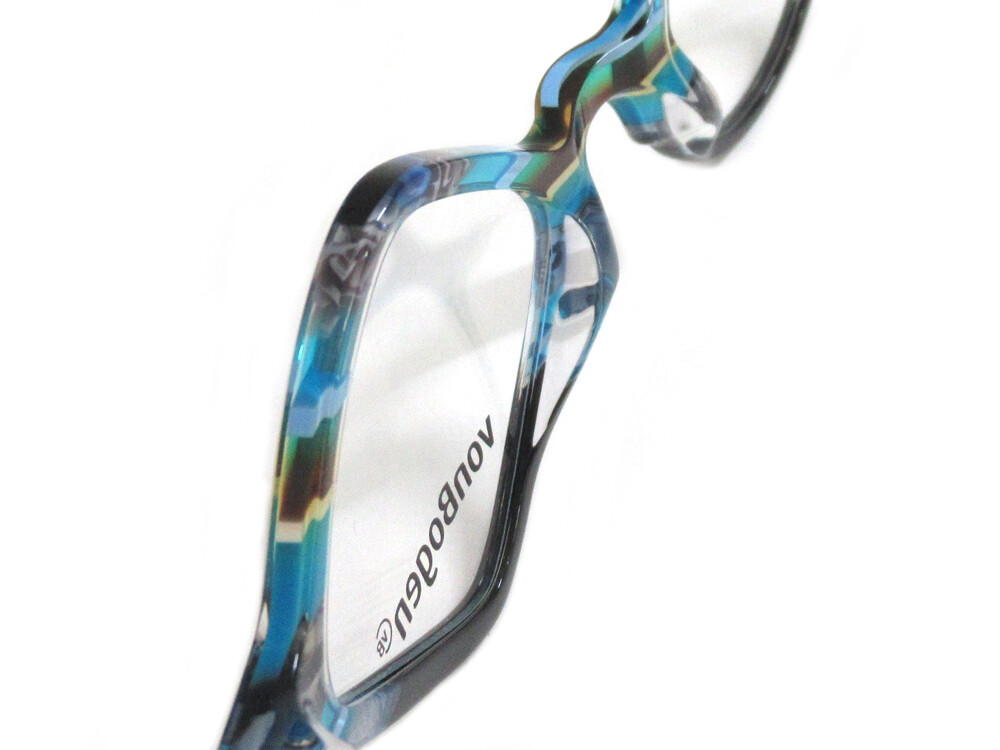 こちら黒や青、茶などのお色が交じり合っているセルフレームです。