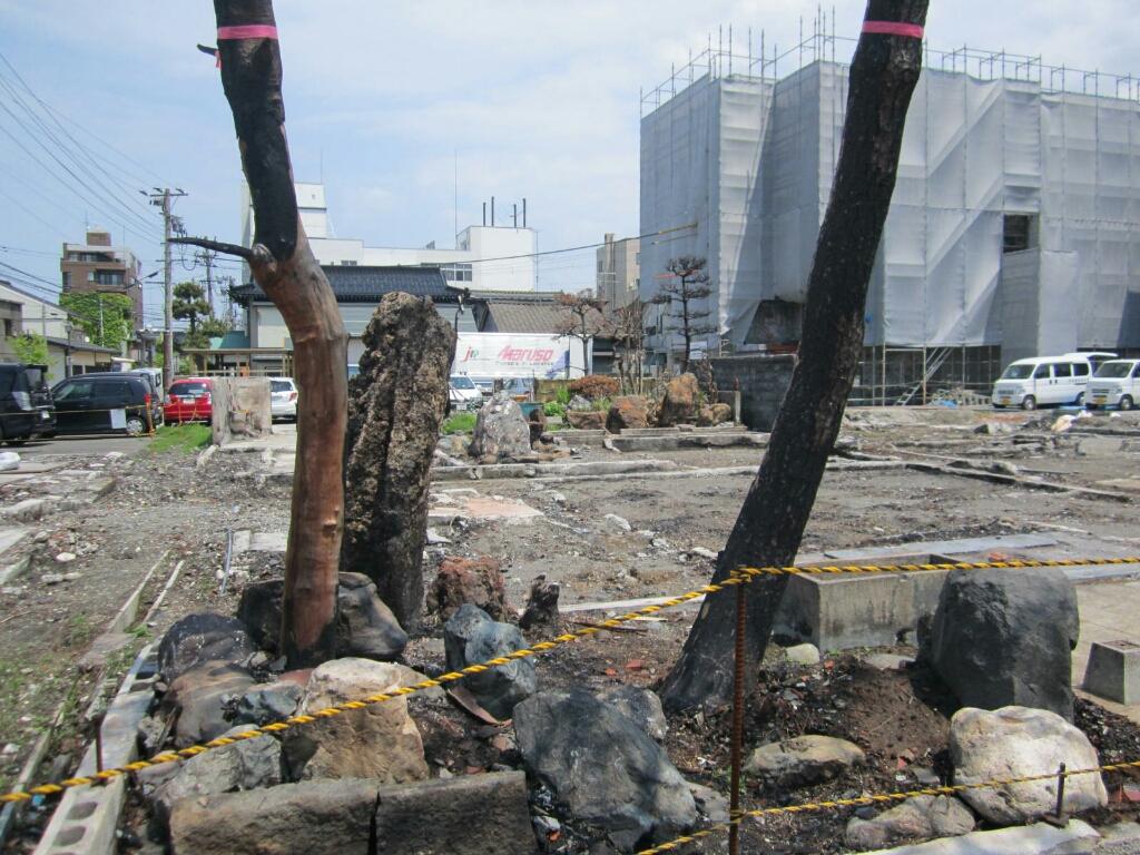 ほぼ、燃え落ちた建物の瓦礫は撤去されたものの、基礎や炭化し枯れてしまった庭木などがまだ残っており、かすかに焦げた匂いが鼻に入り、あの時から続く住民の方々のやり場のない思いと、復興までの道の険しさを肌で感じました。