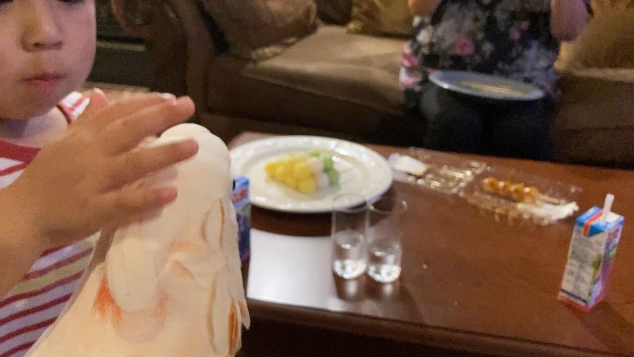 可愛いおもちゃで遊ぶ羽夢蔵はあまり登場せず。段ボール。そして百均おもちゃ。ドーナツぱふぱふ。