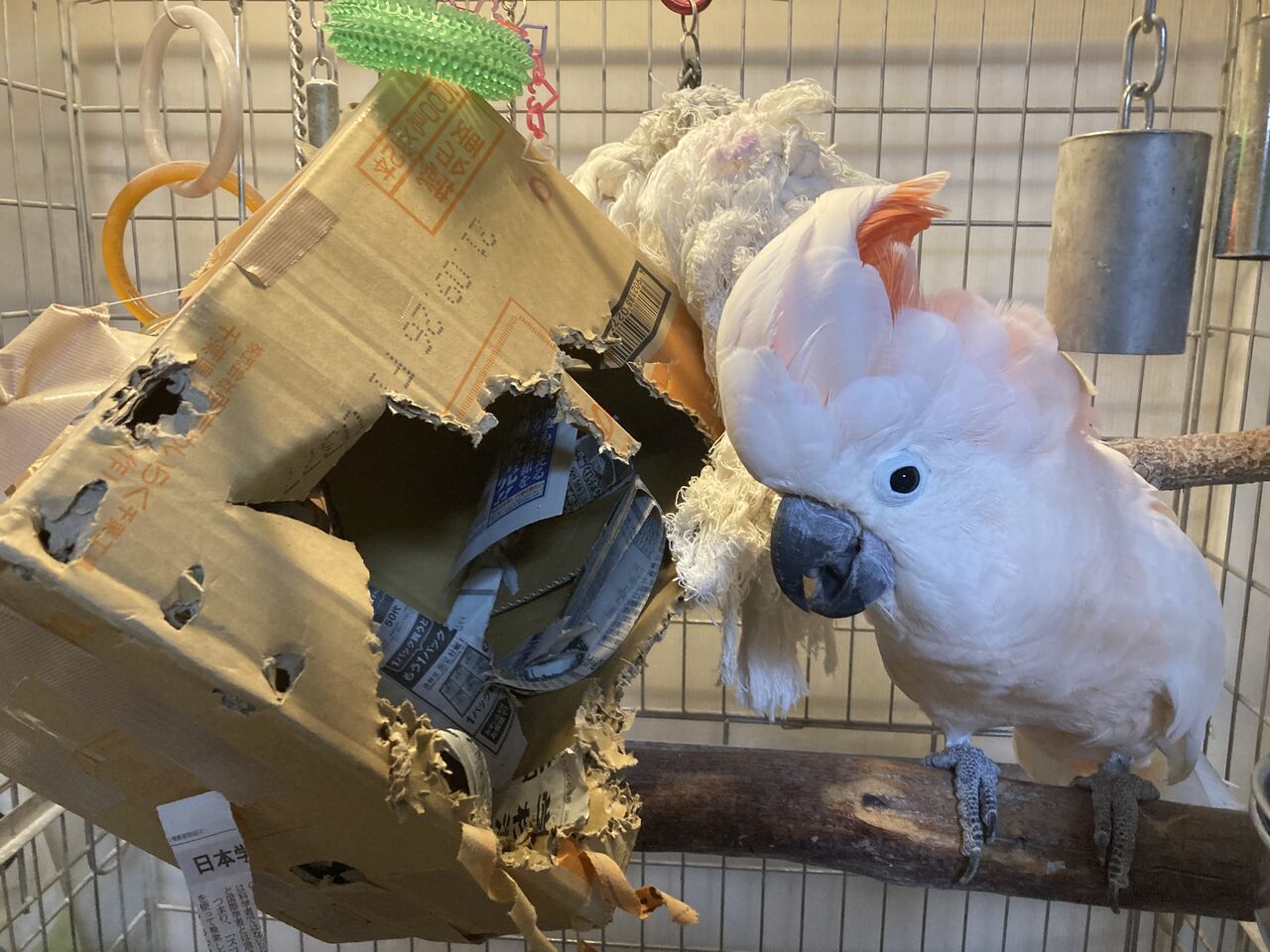 鳥専門おもちゃでも、段ボールでも同じくらいの扱いと喜び。これもリアルなハムライフです。