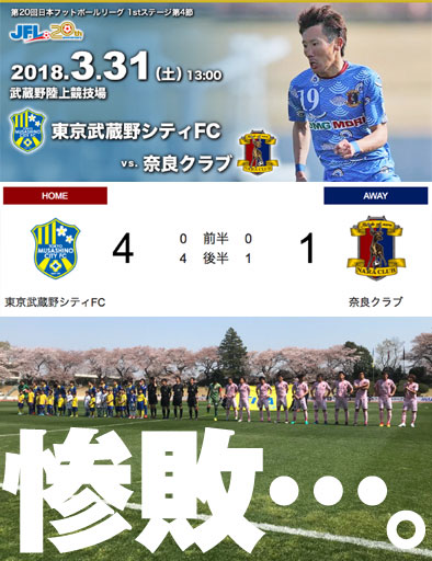 4-1、さすが奈良クラブ〜、開幕4連勝や〜ん!!