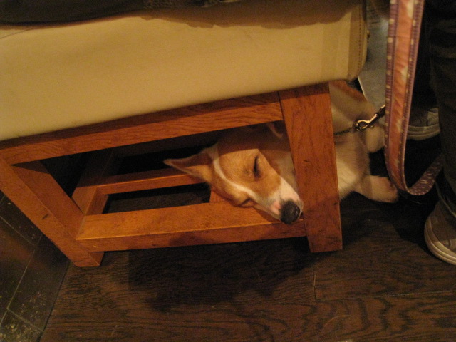 同じテーブルに座っていた方にも、「え、あの(ボードに貼ってある)コーギーと同じ犬?」と言われちゃいました〜、違う犬ってか別の生き物に見えますよねw。