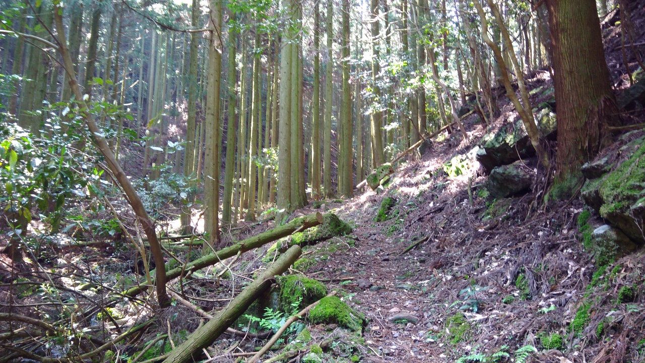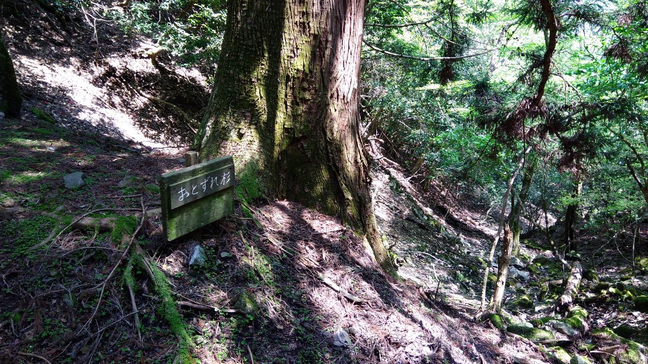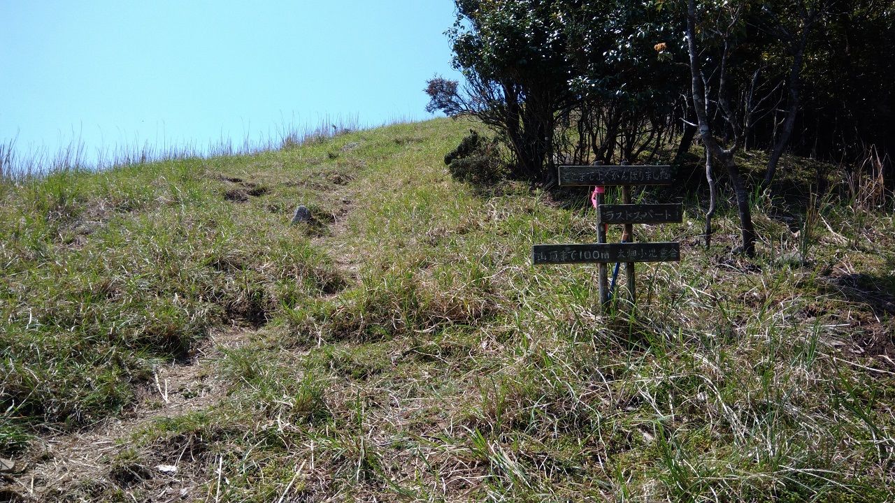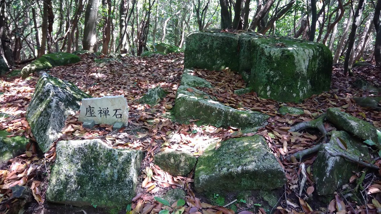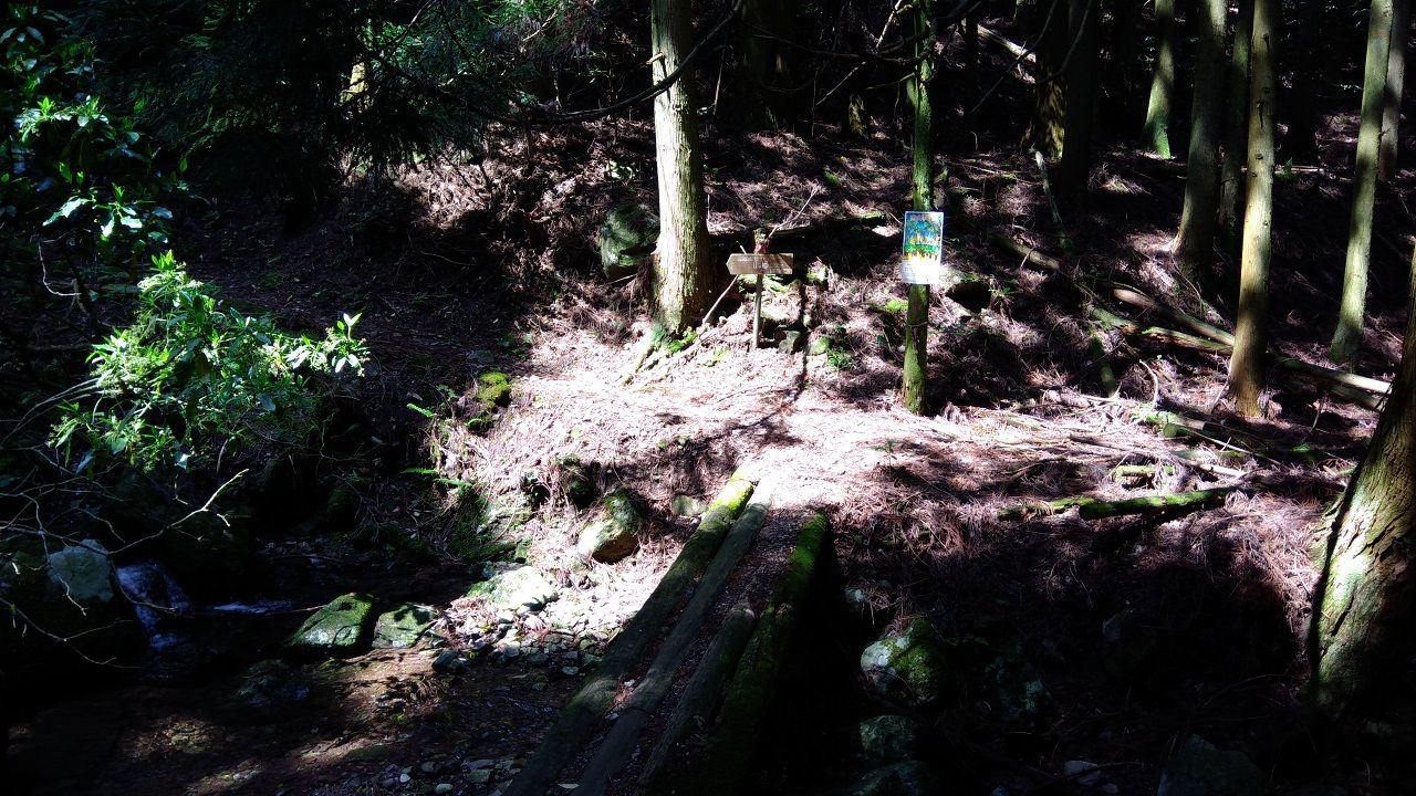 この立て札の左奥に『座禅岩』があるけど、ルートは立て札から右に進むこと