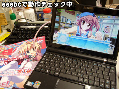 と言うわけで、eeePcで動作チェックです。