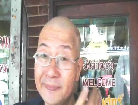2012年、バンコク・スクムビット通り55は通称トンローと呼ばれている。そのBTS(高架電車)トンロー駅から至近距離に昔ながらの床屋があるんです。(写真:頭をキレ~イに剃って貰い上機嫌の田舎オヤジ)