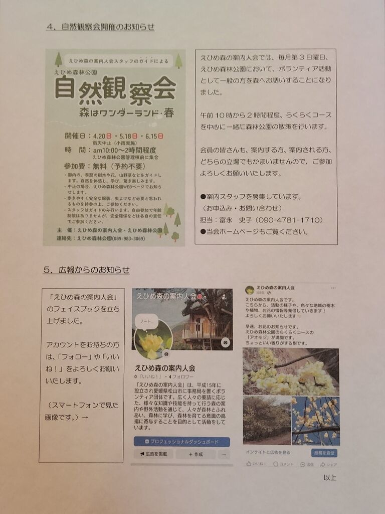 広報より、「えひめ森の案内人会」のフェイスブックのページを立ち上げました。
