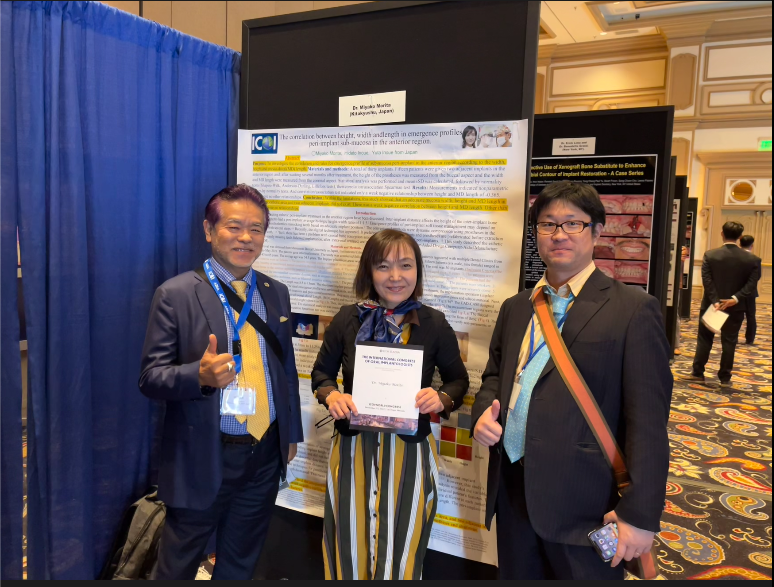 ポスターセッションに参加しました。日本人で出展したのは今回2人のみ、私と岩手医科大学インプラント科のグループ。 岩手医科大学の教授と記念撮影しました。