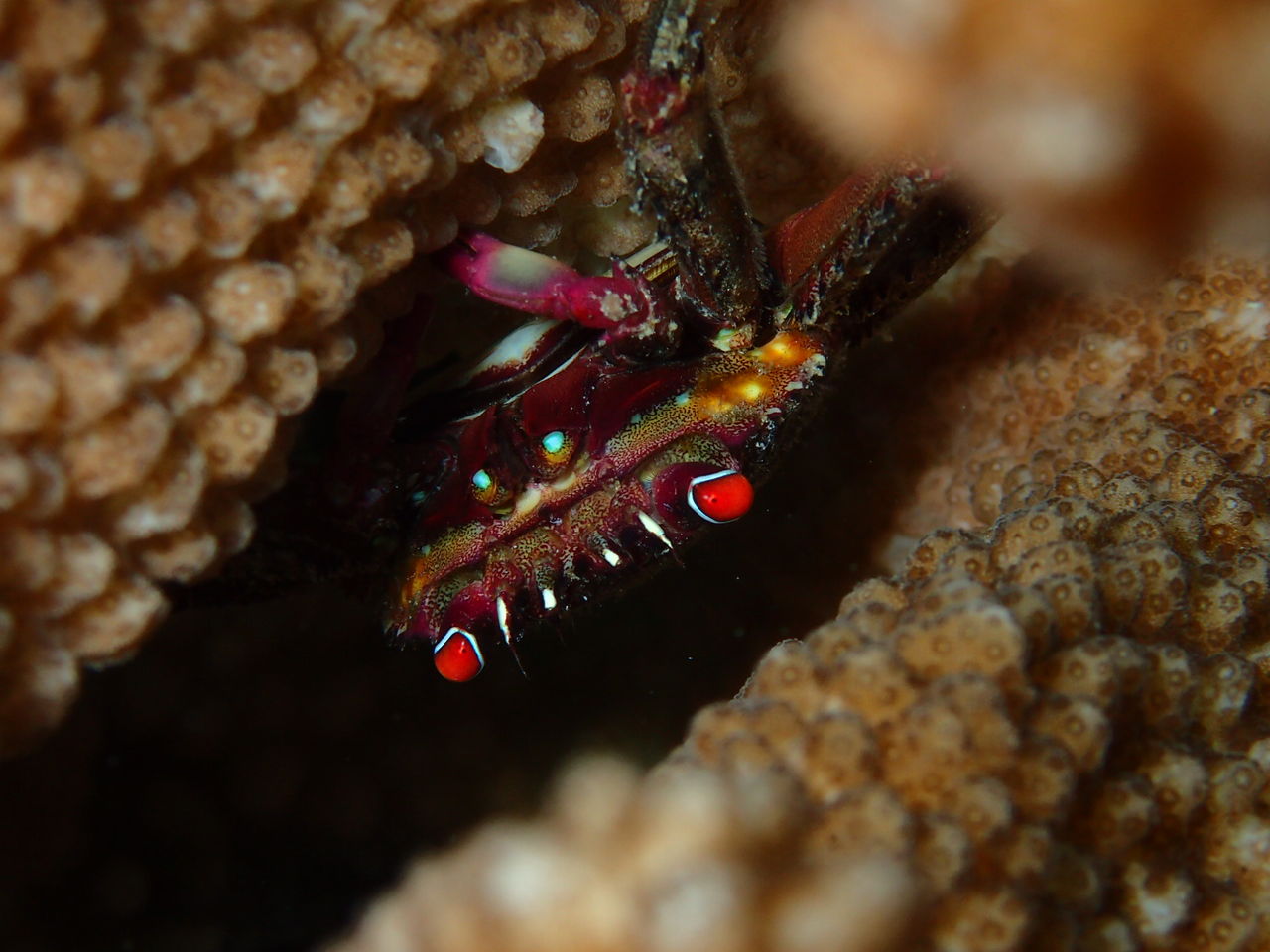 いつもの可愛いオオアカホシサンゴガニの隣に