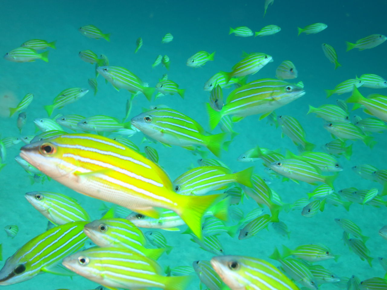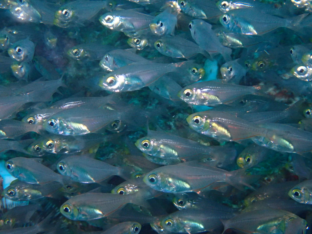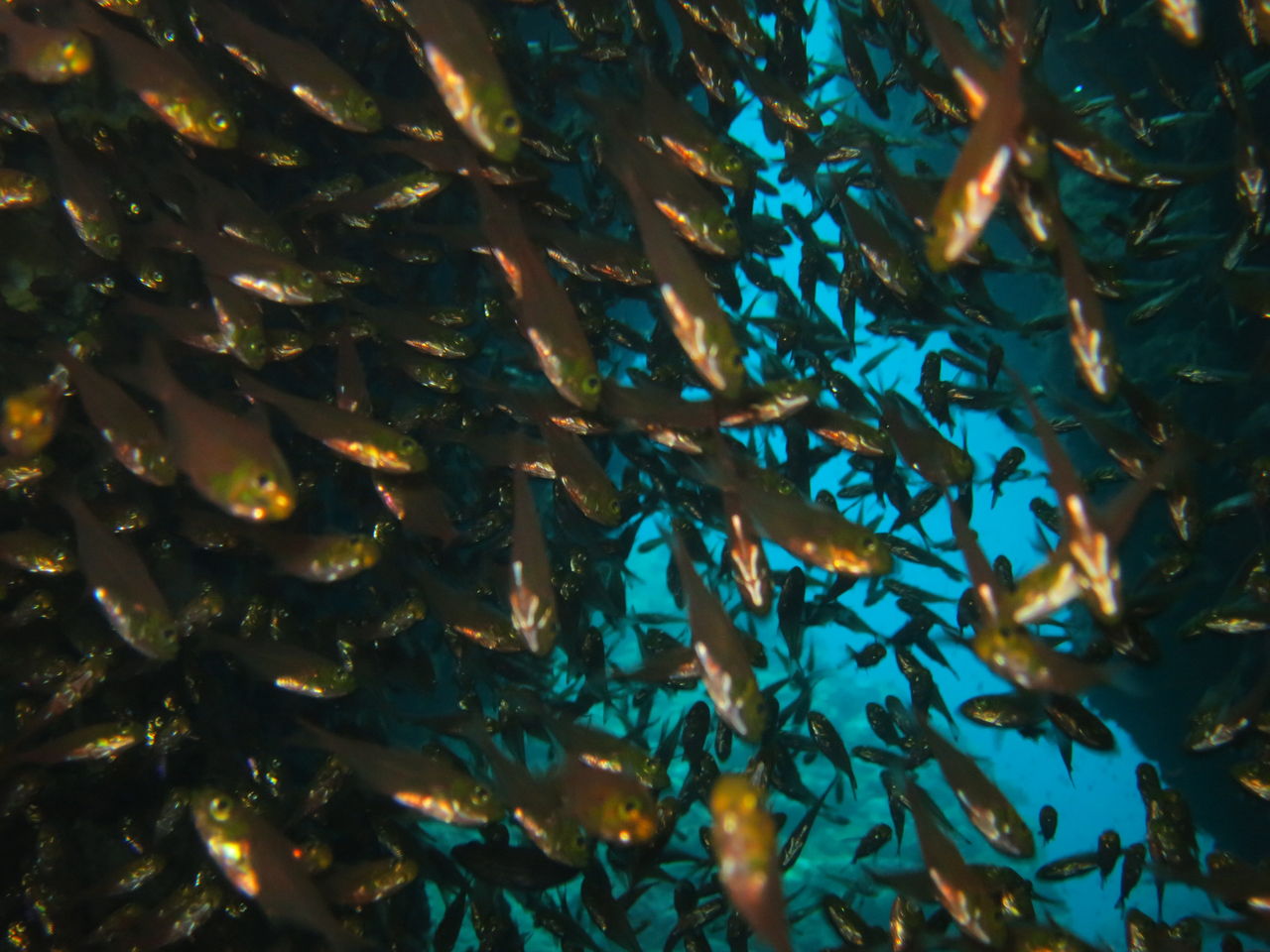 むこうにサバヒの群れ!大きいです
