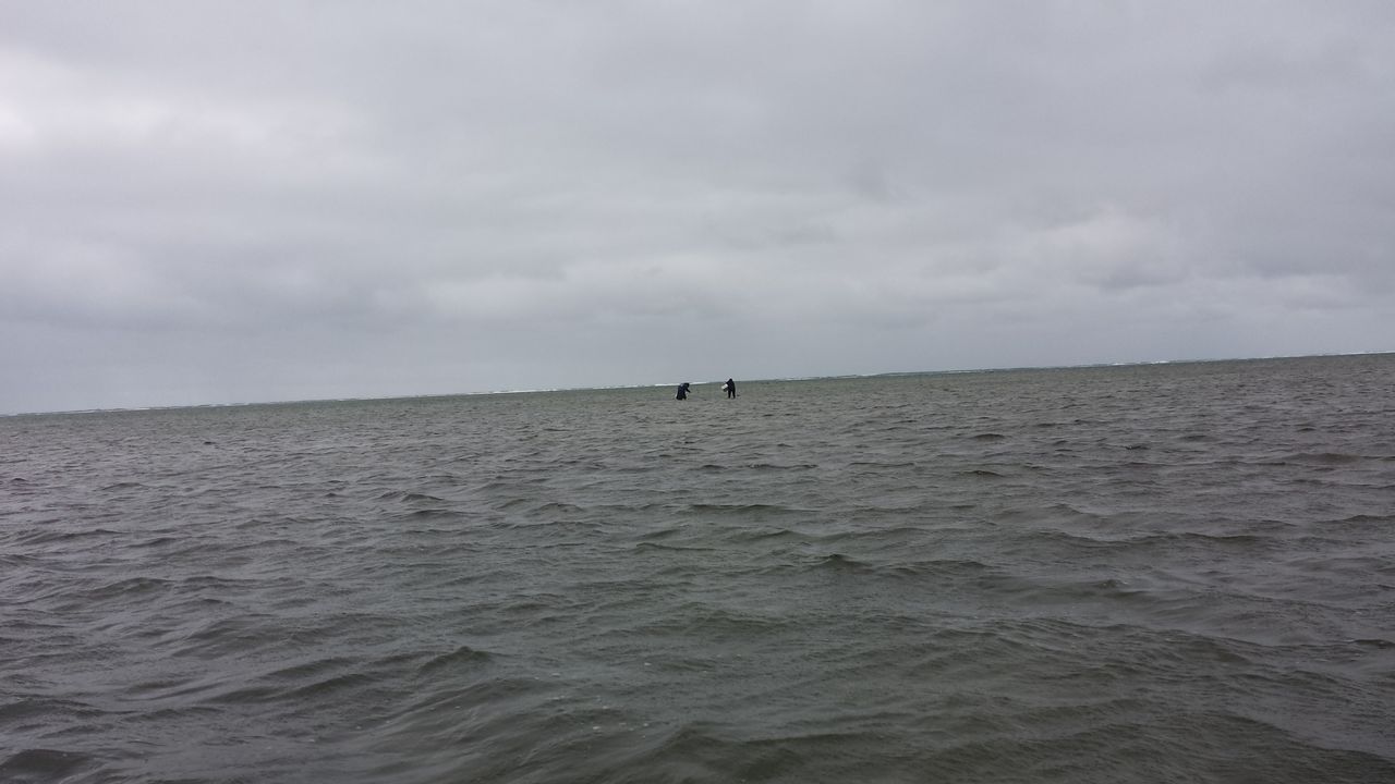 遠浅と言っても、潮が満ちていては「もずく場」まで行く事ができません。