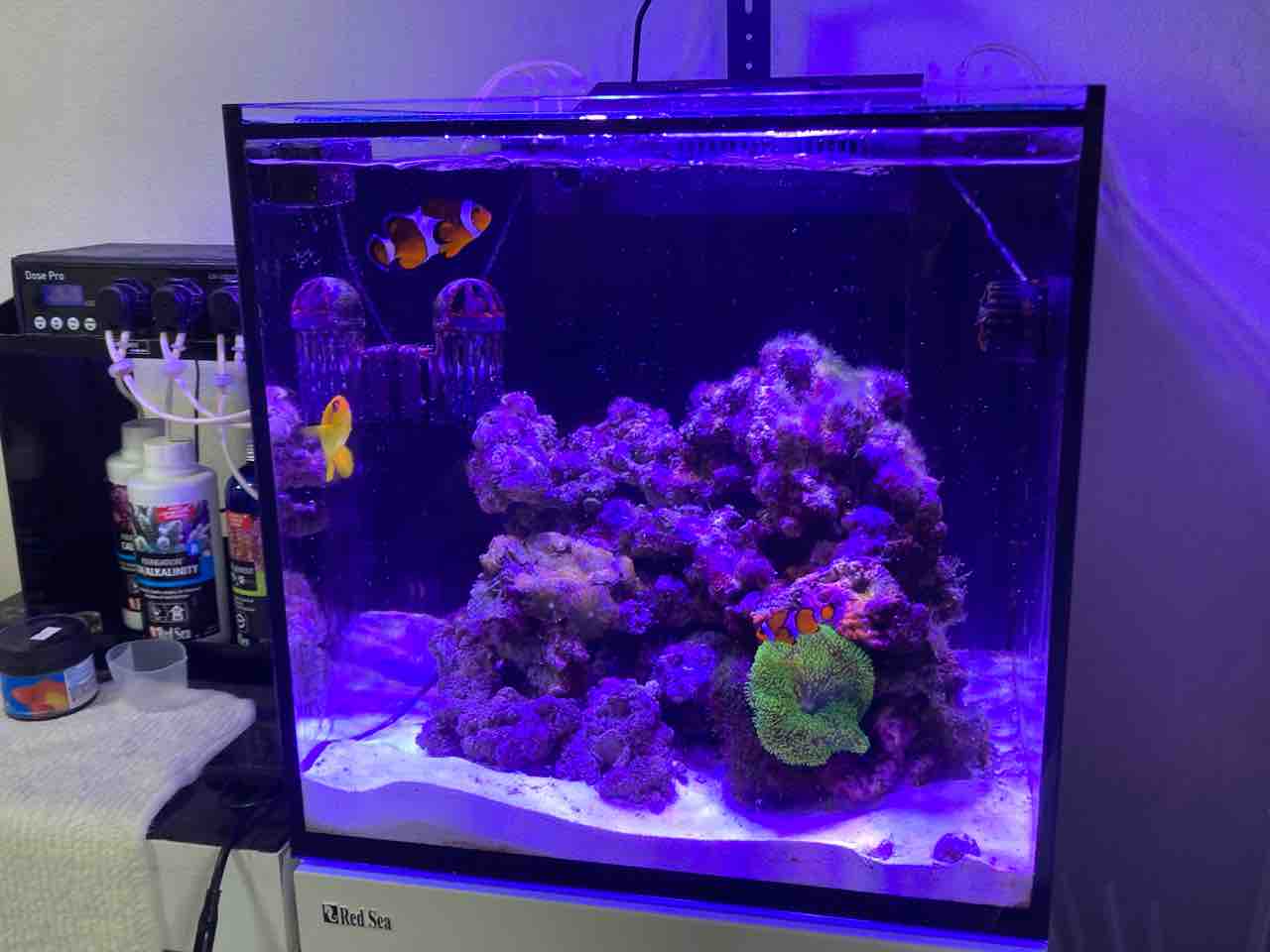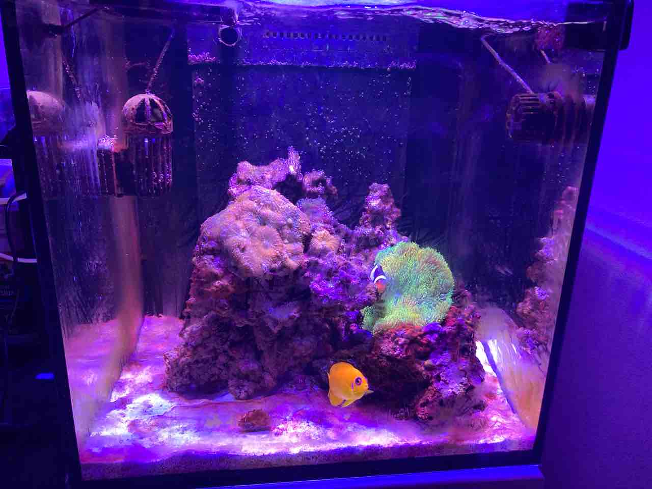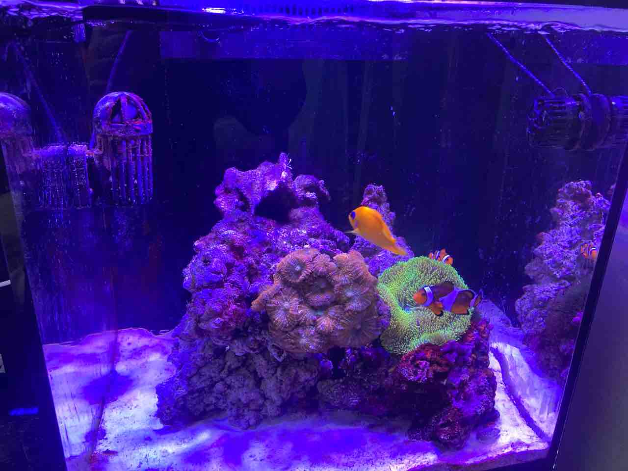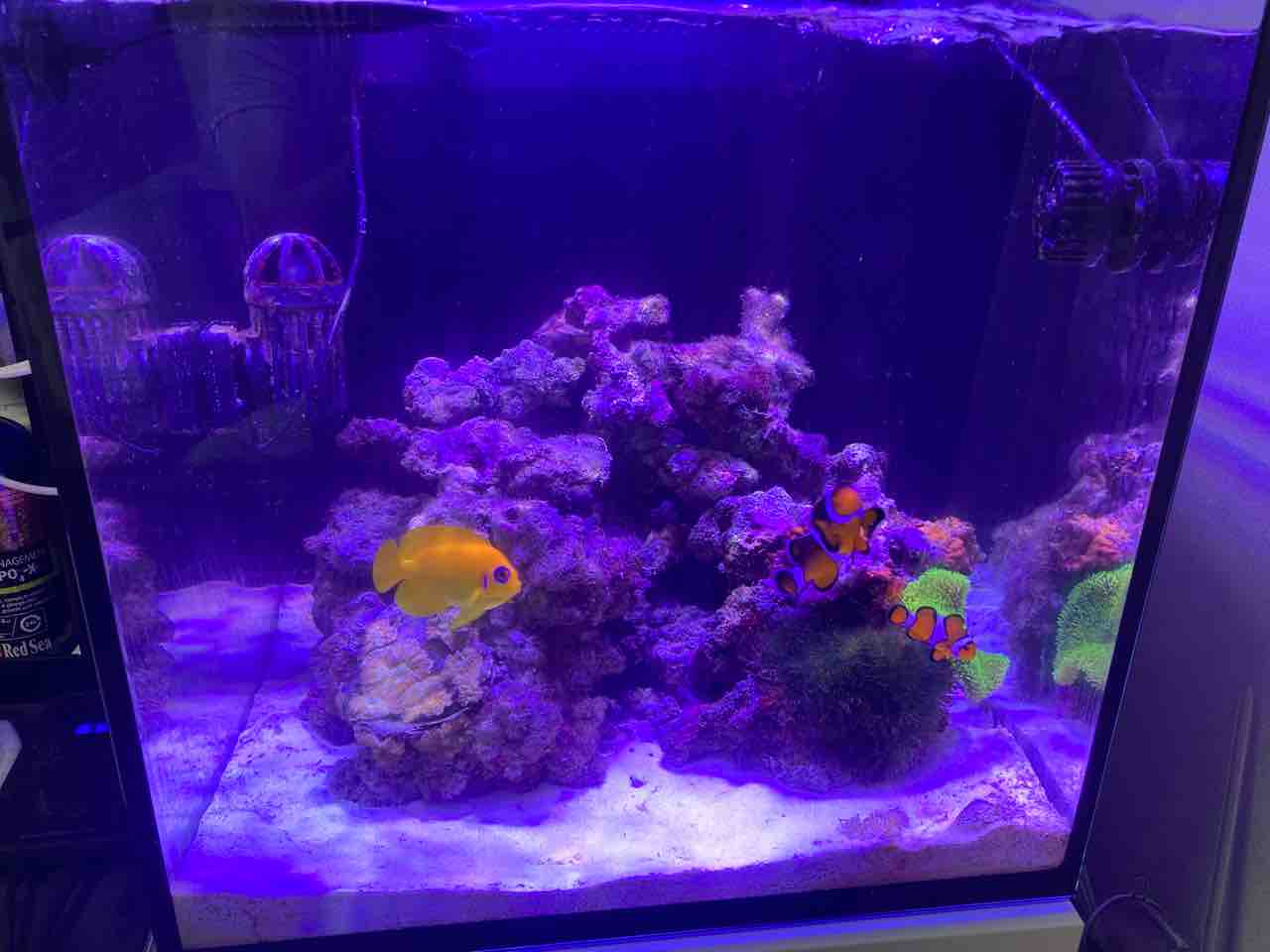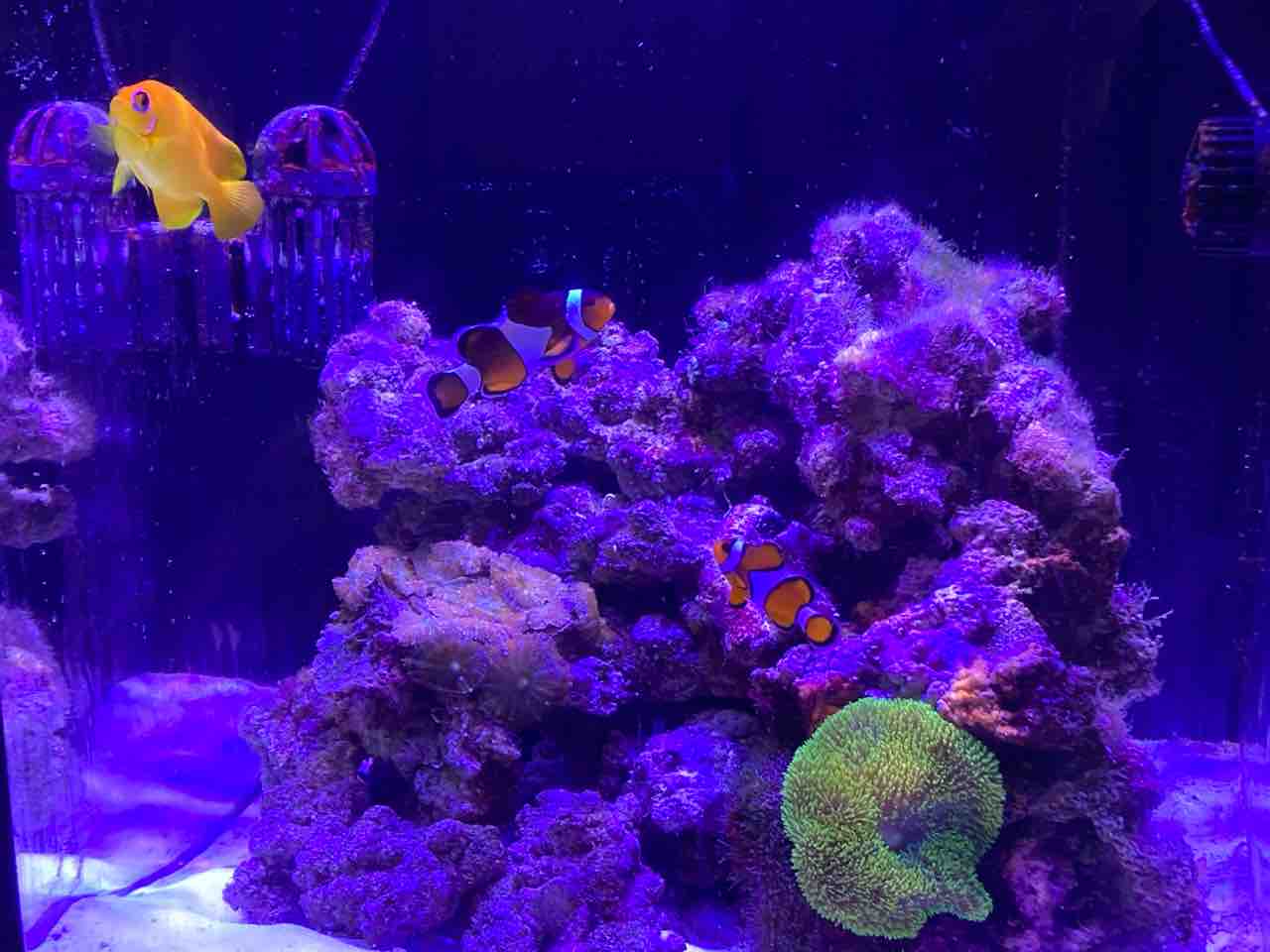 というわけで、海水90L作って万全体制で掃除を決行した。が、簡単だった、まだ表面的な汚れしか無かったし、底砂ギリギリまで海水を抜いたが、60Lで余裕で足りて追加水換えした。