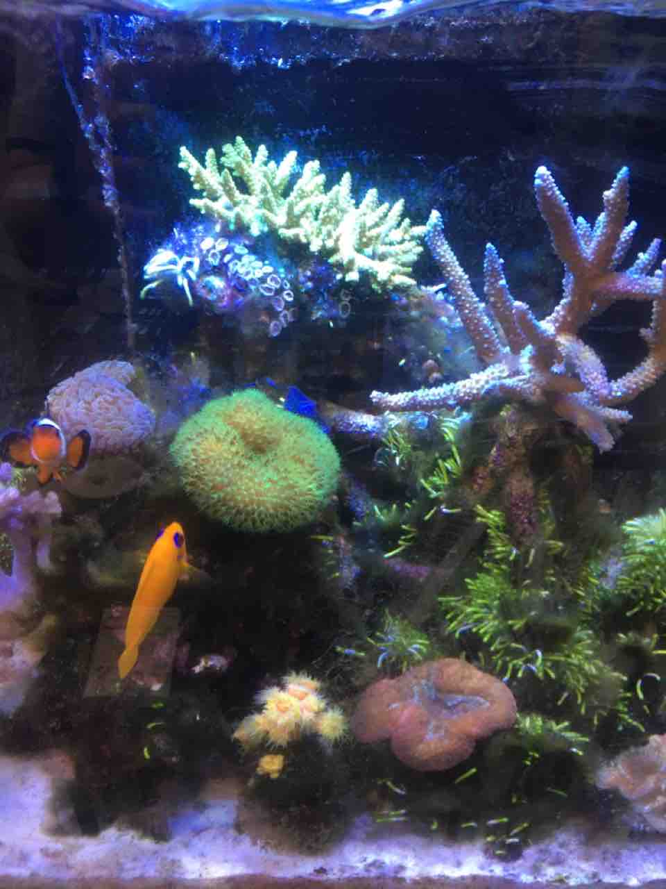 同じ環境で長く飼っているせいか、レモンピールはハタゴイソギンチャクにかなり無頓着だ。平気で掠っている。本来なら電撃のような刺胞毒を受けて仮死状態、悪くすればそのまま捕食されるリスクがあると思うのだが。もしかして、クマノミ同様の免疫を身につけた?