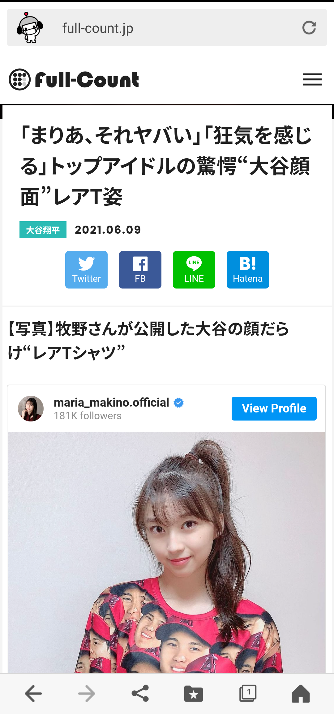 【MLB】「まりあ、それヤバい」「狂気を感じる」トップアイドルの驚愕“大谷顔面”レアT姿