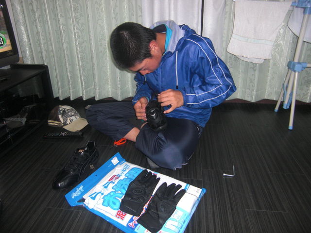 ローリングスのユニフォーム、ローリングスのバッティング手袋、アシックスのスパイクです。