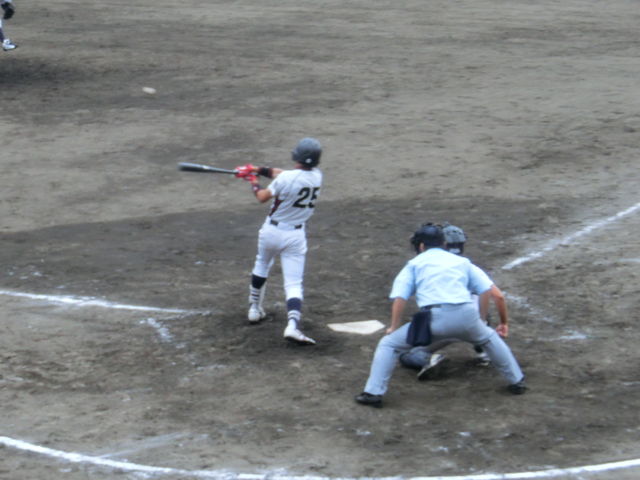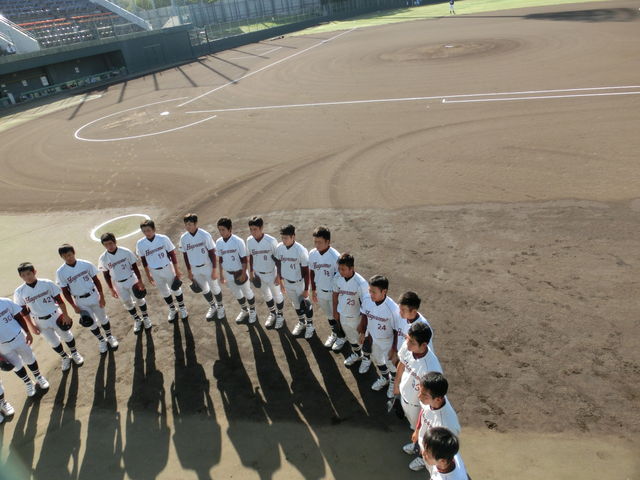 タイムリーヒットかと思われた打球も、相手のスーパープレーに阻まれました。「打ちも打ったり、捕りも捕ったり」の素晴らしいゲーム。試合時間は、きびきびと1時間50分。