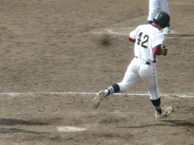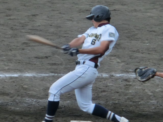 初めてベンチ入りした一年生が、代打で登場。高校時代は、練習試合でも打席に立ったことがなかったそうですが、大学野球の舞台で初打席初安打という躍進。逆転のきっかけをつくりました。