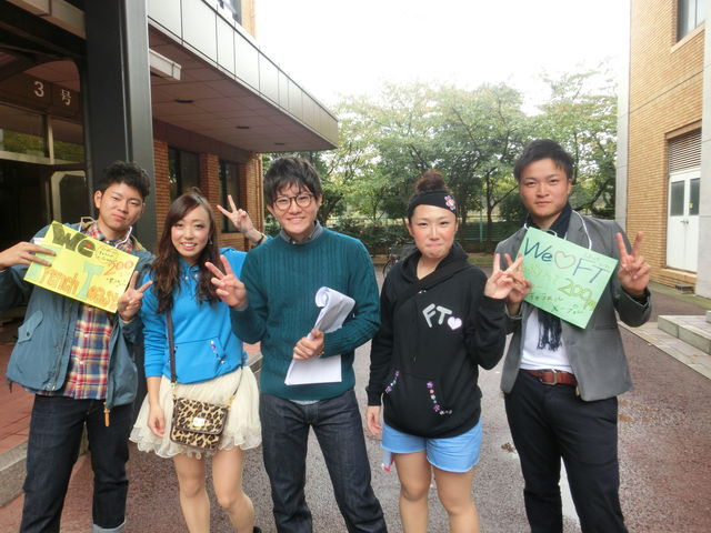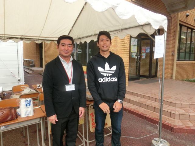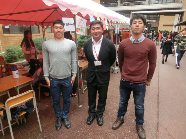 ナカムラくんの高校時代の監督さんが大学に来られ、とても緊張しているナカムラくんでした。ちなみに服装は、ナカムラくんはサッカーの本田圭佑選手を、ヨシノくんはお笑い芸人をイメージしているそうです。