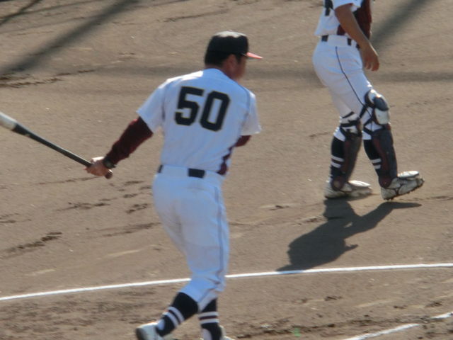 試合の方は、低めに集められた速球をバットに当てるのが精一杯という感じで、完封負け。しかし、三年生投手1名と、二年生投手3名が、再三のピンチを凌ぎ、失点は1。今季の最後を飾るにふさわしい、きびきびとした緊張感のある試合ができました(1時間45時間)。