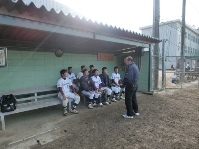 試合後、バッテリーが総監督の指導を受けました。「この冬に、もう一つレベルを上げよう」。