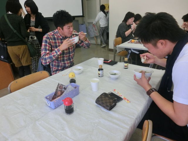 司会役の二年生も、昼休憩に「しらす丼」を頬張っていました。二日間とも終日、司会業務を行うそうです。