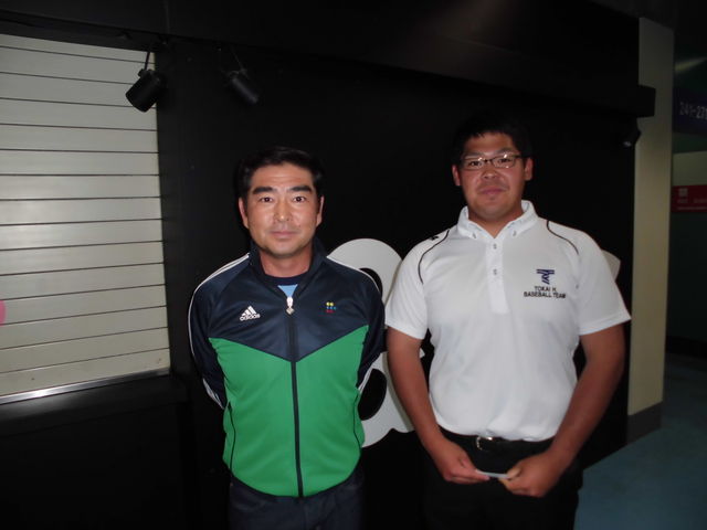 選手のときと変わらず、礼儀正しいままでした。案内していただいた竹本コーチと。