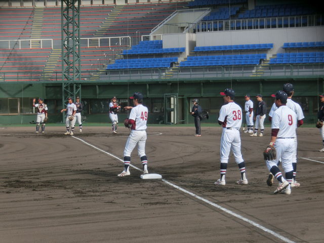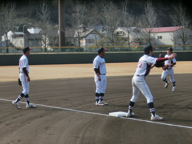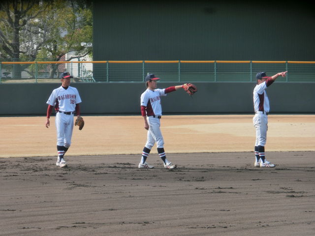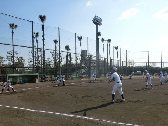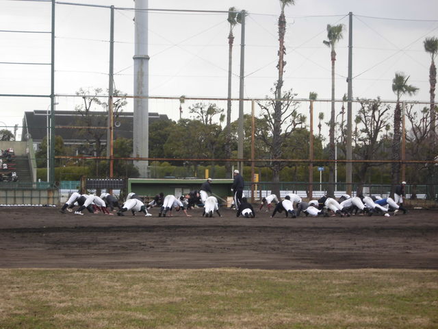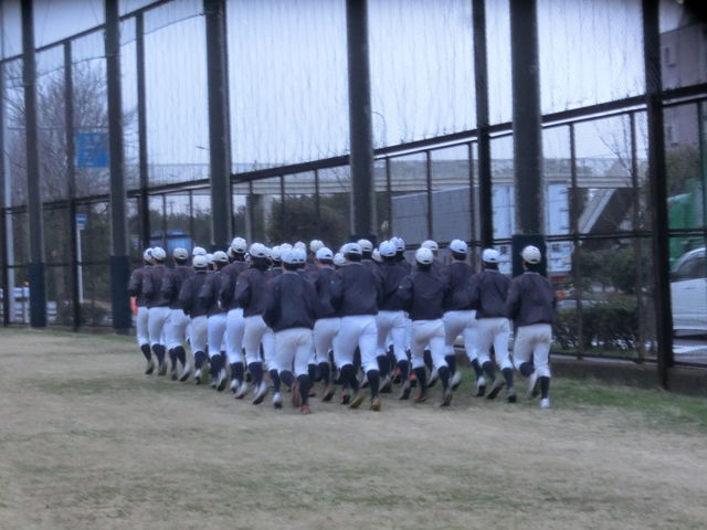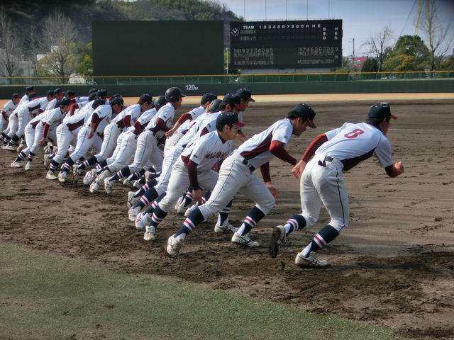 新入生は、今日は別メニューでしたが、最後は先輩たちと一緒に、ベースランニングとスクワットとプッシュアップ(腕立て伏せ)を行いました。