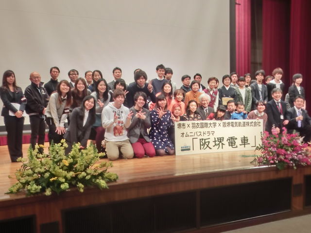 本学の現代社会学部・放送メディア映像学科の学生が制作したオムニバスドラマ『阪堺電車:路線が導く不思議な出会い』が、羽衣学園講堂にて上映されました。