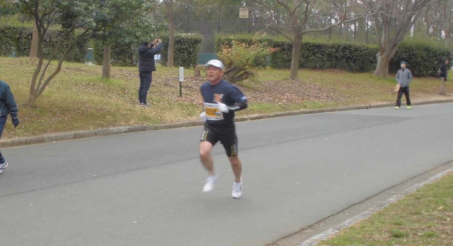 今日は、21分05秒(男子50歳代・第6位)。「大阪新春5km」では最高のタイムが出ました(マネージャー撮影)。