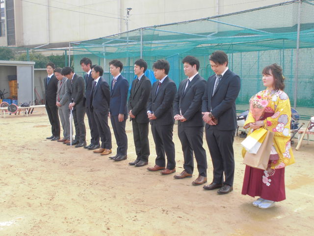 最後のグラウンド挨拶。「四年間でいちばん大きな声じゃなかったか?」とは、卒業生たちの弁。