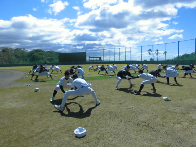 大学野球部は、今日から春季みなべ合宿。16名のニューフェイスが、大学野球選手となるための訓練をしています。