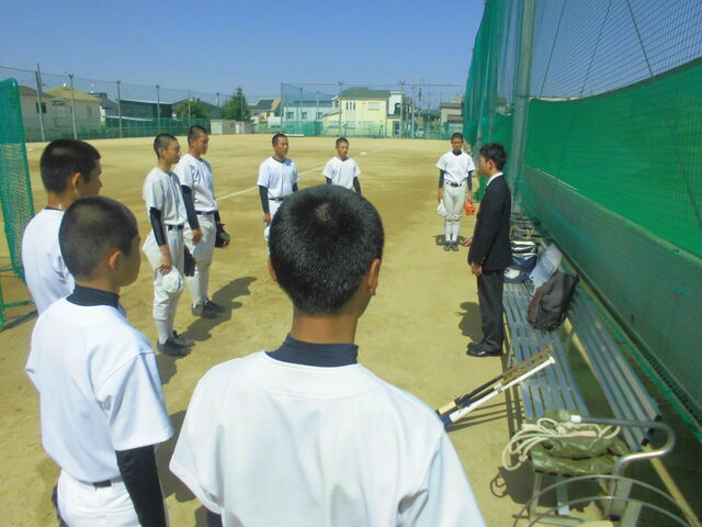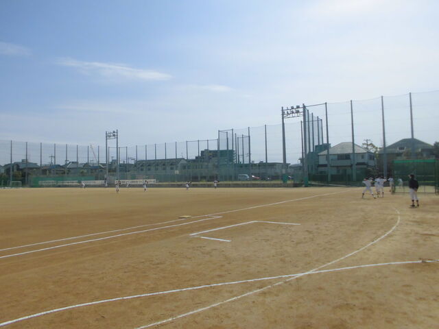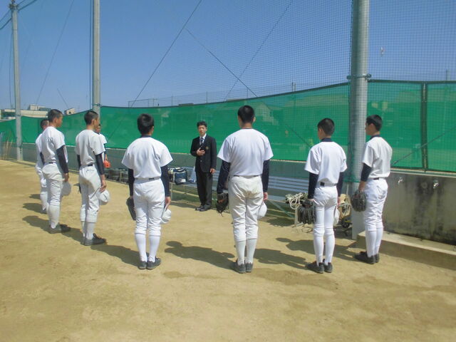 高師浜球場で大学野球部と合同練習を行いましたが、50名近くの大学生の中に放り出された7名の高校生(2名は授業により不参加)は、右往左往という表現がぴったりの状態でした。