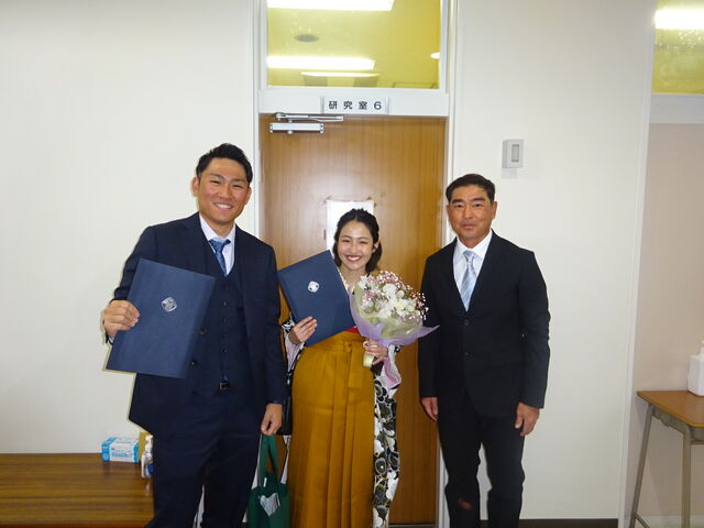 3期生(卒業生)の主将が、大学合格の報告に訪れました。「夏の初勝利」を遂げた伝説の主将です。