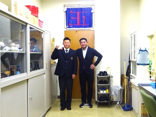 高校野球部三年生(4期生)が、大学合格の報告にやってきました。この学年(5名)では、合格第1号となります。