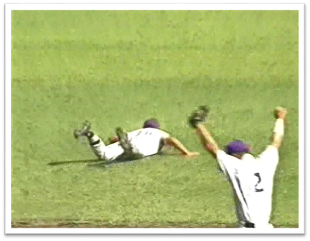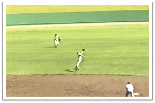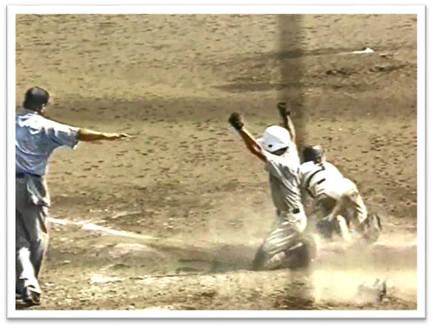 5回表、2-2の同点。二死一塁から、右腕を骨折した五番・濱の打球は、ライト線への飛球。右翼手がダイビングキャッチを試みるも捕れずに(記録は三塁打)、一塁走者の市川が長駆ホームイン(1点勝ち越し)。