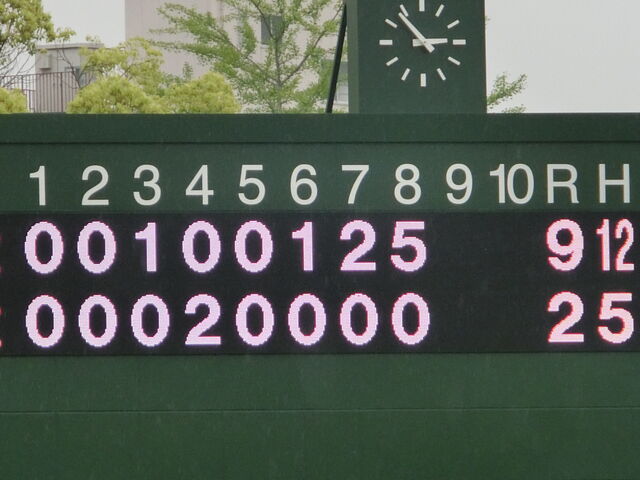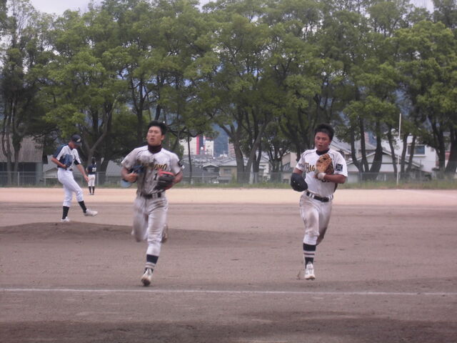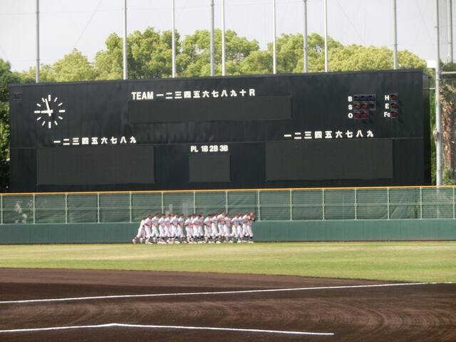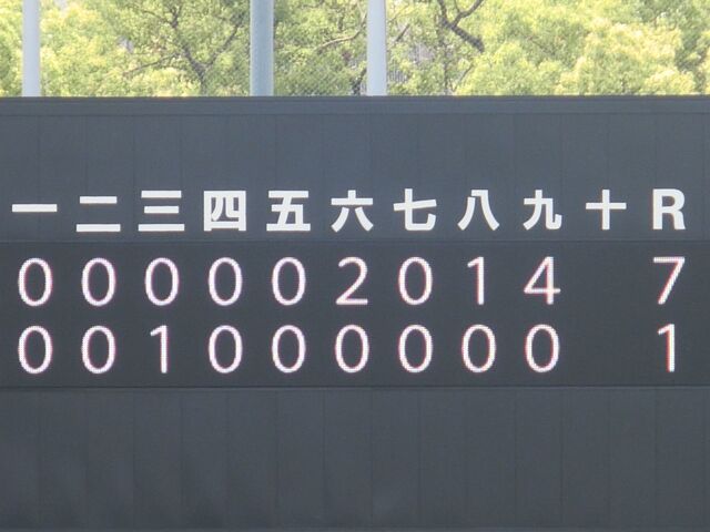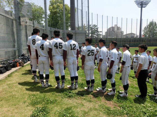 昨日に引き続き、首位チームとの対戦です。五回を終えて0-0。2日連続で先発を任された三年生投手が七回まで無失点。八回から救援した一年生投手も無失点。継投で3試合連続の完封です(△0-0、○4-0、○4-0)。