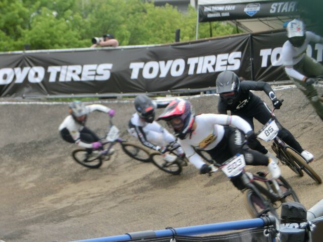 左から、出場選手、応援者(友人)、本学の放送メディア映像学科の学生(いずれも四年生)。6月、7月は海外のレース(フランス、オランダ)に出場するようです。