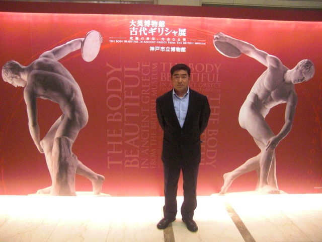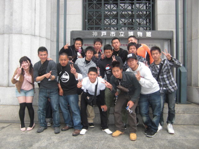 今日は、新入生学外研修で、神戸へ行きました。はじめに「しあわせ村」でバーベキュー。本ゼミ(高校でいうと担当クラス)の13名の学生は、すべて野球部員です。昼食を済ませたあと、「神戸市立博物館」へ。ギャー!! 左から2人目の部員の左肩に手が…。しかし、後ろに足が見えています。一般学生のイタズラでした。マネージャーを入れると1年生部員は、総勢14名。スポーツライフコースの学びの一歩です。みんなが充実した4年間を過ごしてくれることを祈ります。明日から3日間、出張です。4日後にまたお会いしましょう。