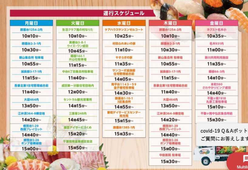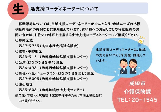 そこで成田市では㈱カスミと「買い物支援と地域の見守り活動推進に関する協定」を結び、8月30日(月)より「移動スーパー」の運行を開始しています。