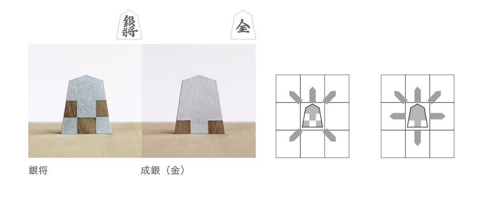 特に混乱しやすい「銀」と「金」の違いや、敵陣に入って成った後はどうなるかなど、間違えやすいものも視覚的に理解することができます。