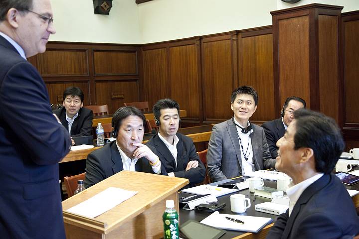 もちろん授業は全て英語ですがちゃんと同時通訳がつきますので、私の拙い英語力でも問題ありませんでした。でも意地を張ってヘッドホンを外していることに注目!