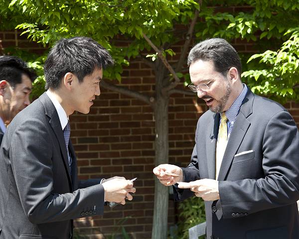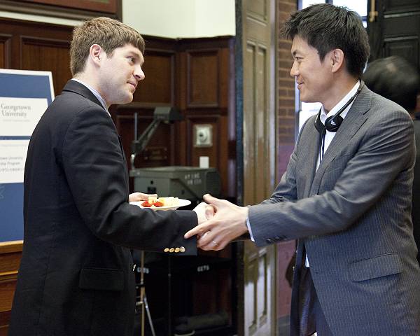 日本でも著名なMichael Green氏からは日米の防衛政策について講義を受けました。記念撮影と名刺交換にも快く応じて頂きました。
