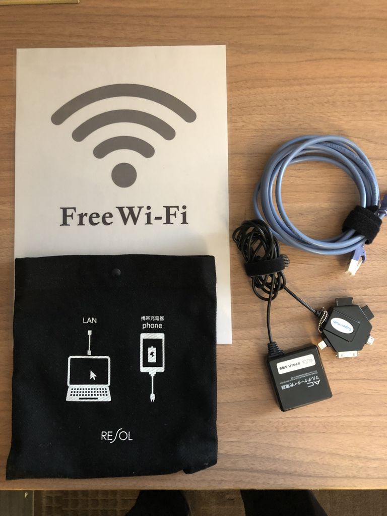 「無料Wi-Fi」ももはや当たり前ですが、パソコン用の有線ケーブル、そして各種スマホや携帯電話に対応した充電器まで用意されていたのには驚きました。