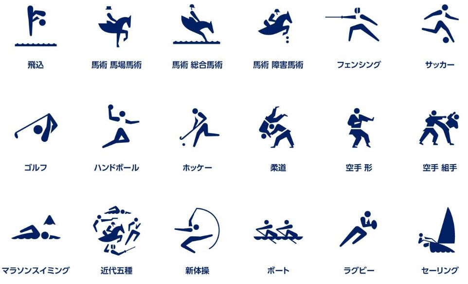 今回発表された全33競技50種類のオリンピックスポーツピクトグラム